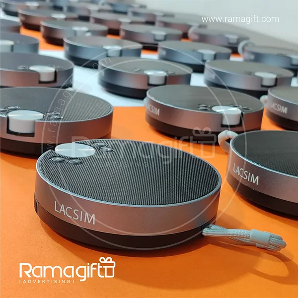 ابعاد کوچک و حمل آسان، چاپ لوگوی حرفهای دور بدنه، طراحی دایرهای جذاب، کیفیت صدای خوب، ظاهر شیک، مصرف کم، ماندگاری بالا و قابلیت ست شدن با دیگر محصولات.