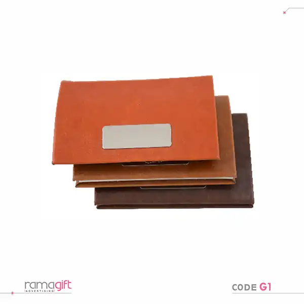 جاکارتی تبلیغاتی کد G1 از ترکیب چرم مصنوعی با فلز مرغوب ساخته شده است تا ظاهری مدرن، لوکس و حرفهای به هدیه تبلیغاتی شما بدهد. این جاکارتی به صورت عمودی باز و بسته میشود و دارای پلاک فلزی صاف است که فضای کافی برای چاپ لوگوی برند شما فراهم کرده و امکان چاپ با روش تامپو یا لیزر را به بهترین شکل ارائه میدهد. رنگبندی متنوع این جاکارتی، از طیفهای مختلف قهوهای تا رنگهای اختصاصی، آن را برای هدیه سازمانی و ستهای اداری کاملاً مناسب کرده است. حداقل سفارش ۱۰۰ عدد میباشد و بستهبندی میتواند به صورت جعبه اختصاصی یا کارتن انجام شود تا محصولی شکیل و محافظتشده ارائه گردد.