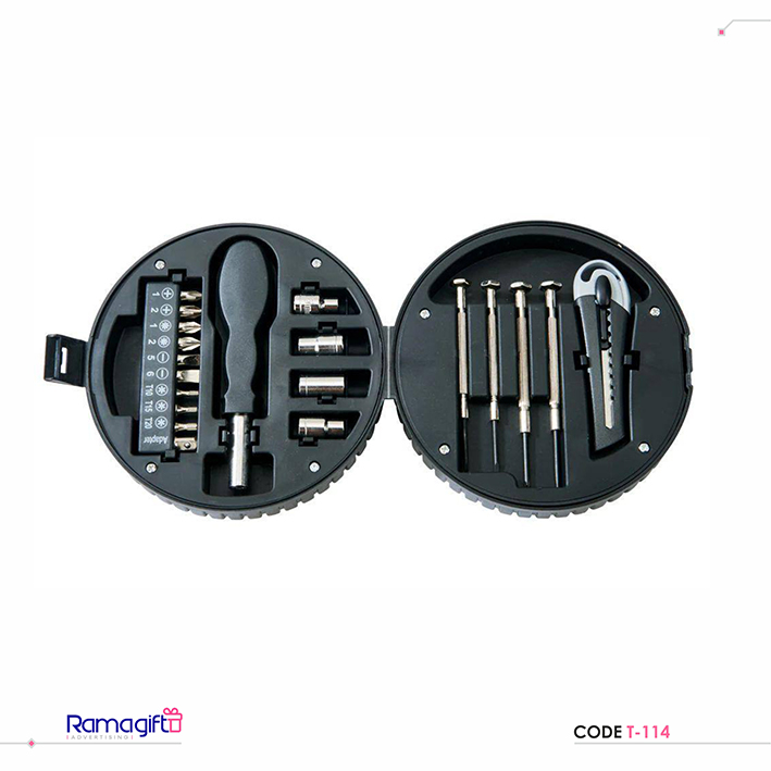 جعبه ابزار تبلیغاتی کد T-114 یکی از خاصترین و پرطرفدارترین مدلهای ابزار تبلیغاتی در میان شرکتها و برندهای صنعتی است. طراحی منحصربهفرد این جعبه بهصورت گرد و مشابه چرخ خودرو بوده و همین موضوع باعث میشود در نگاه اول، توجه مخاطب را جلب کند. داخل این جعبه مجموعهای کامل از ابزارهای کاربردی قرار گرفته است؛ از جمله انواع سری پیچگوشتی دوسو و چهارسو، کاتر با تیغه تیز و مقاوم، آچارهای کوچک و ابزارهای جانبی که برای هر نوع کار فنی و تعمیراتی لازم است. بدنه مقاوم و ضدضربه آن باعث میشود جعبه ابزار برای استفاده طولانیمدت مناسب باشد. بستهبندی محصول نیز در کارتن و جعبه اختصاصی انجام میشود و امکان چاپ لوگو یا برند شما به روشهای تامپو یا لیزر روی بدنه فراهم است تا جلوهای کاملاً حرفهای و تبلیغاتی داشته باشد.