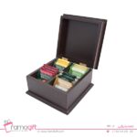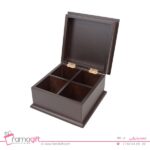 که از جنس چوب طبیعی ساخته شده و درب آن کاملا چوبی است. این محصول دارای 4 تقسیمکننده یکسان برای نگهداری انواع کیسههای چای ، دمنوش، لیپتون و قهوه می باشد .