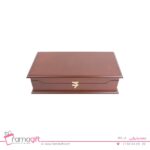 جعبه پذیرایی کد 705 با بدنه محکم و یراق آلات با کیفیت ، در نوع خود یکی از خاص ترین و شیک ترین جعبه ها بشمار میآید، که شرکت هدایای تبلیغاتی راما گیفت در طراحی آن با اضافه کردن یک قفل برنجی به قسمت درب و بدنه توانسته به زیبایی آن بیفزاید.