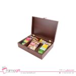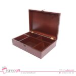 اگر از طرفداران این سبک جعبه پذیرایی هستید ، این مدل با کیفیت و در ابعاد 8.5*21*30 تولید شده است ، که دارای 5 دیوایدر( محفظه ) در اندازه های مختلف می باشد، در فضاهای این جعبه میتوان از انواع دمنوش ها و تی بگ استفاده کرد.