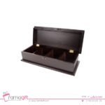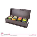 این کالا به رنگ قهوه ای تیره و در 4 دیوایدر(تقسسیم کننده) و با درب چوبی میباشد . از محفظه ها میتوان برای انواع دمنوش ها استفاده کرد .