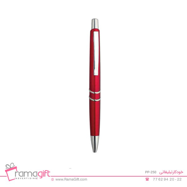 خودکار تبلیغاتی مجموعه ای از انواع خودکارهای پلاستیکی و فلزی است خانواده ای بزرگ که جایگاه پرفروش ترین کالای هدیه تبلیغاتی را به خود اختصاص داده است . خودکار تبلیغاتی پلاستیکی PP-250 با توجه به شکل و رنگ مورد توجه بسیاری از سازمان ها قرار گرفته است . چاپ لوگو بر روی این خودکار فروش و معرفی محصولات شما را ارتقا می دهد . حسن انتخاب خودکار بعنوان هدیه تبلیغاتی در قرار گرفتن دید افراد و همچنین ارزان بودن آن است .