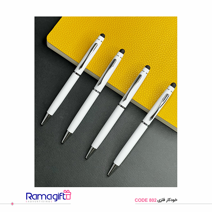 خودکار فلزی کد 802 یکی از پرفروشترین و محبوبترین مدلها در میان هدایای تبلیغاتی راماگیفت است. طراحی کمی پهنتر بدنه باعث شده این مدل بسیار خوشدست و حرفهای باشد و تجربه نوشتن راحت و روان را ارائه دهد. رنگ سفید آن نیز حس تمیزی، سادگی و جذابیت بصری ایجاد میکند و برای ست شدن با دفترچه، سررسید، تقویم رومیزی، فلاسک و انواع اقلام تبلیغاتی انتخابی ایدهآل است. با امکان چاپ لیزر روی بدنه، لوگو با وضوح عالی و ماندگاری زیاد ثبت میشود و این موضوع برند شما را در ذهن مخاطب ماندگار میسازد.