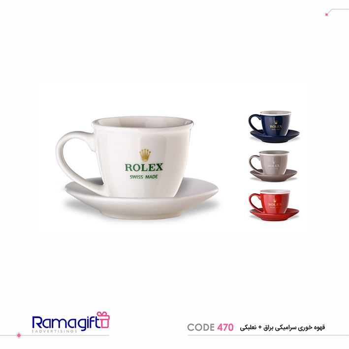 لیوان سرامیکی تبلیغاتی براق با نعلبکی کد 470