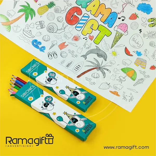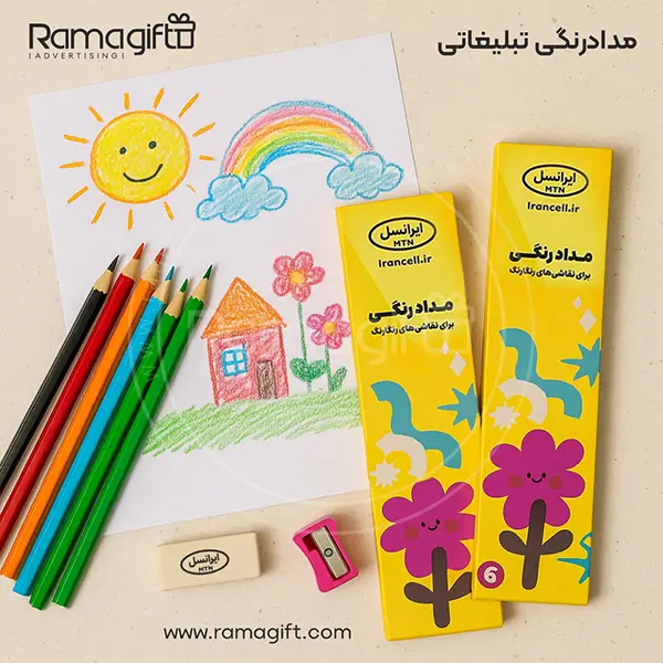 این مداد رنگی تبلیغاتی در بستههای 6 رنگ شامل صورتی، آبی، قرمز، سبز، زرد و قهوهای تولید میشود و در جعبهای اختصاصی با چاپ افست عرضه میگردد. طراحی جعبه بهصورت پنجرهدار یا ساده، مطابق با سلیقه مشتری انجام میشود و امکان چاپ لوگو روی مدادها با روش تامپو وجود دارد. هزینه چاپ روی مداد جداگانه محاسبه میشود. این محصول علاوه بر استفاده مستقل، قابلیت ست شدن با سایر اقلام لوازمالتحریر را دارد و میتواند بهعنوان بخشی از پکهای تبلیغاتی و آموزشی مورد استفاده قرار گیرد.