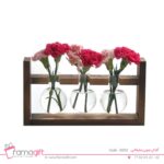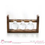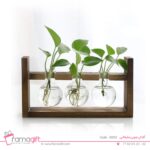 گلدان چوبی تبلیغاتی کد B203 به ارتفاع 16/5 و طول 30/5 سانتیمتر از زیباترین گلدان های تبلیغاتی محسوب میشود . سه حباب شیشه ای در این گلدان بکار رفته است که میتوان از سه گیاه مختلف بعنوان کشت هیدروپونیک در آن استفاده کرد . پایه ها از جنس چوب طبیعی بطور ظریفی طراحی شده است که جذابیت خاصی به گلدان تبلیغاتی هیدروپونیک بخشیده است .